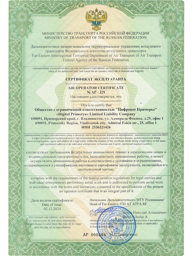 Сервис аэромониторинга «Цифровое Приморье» - лидер сферы беспилотных авиационных